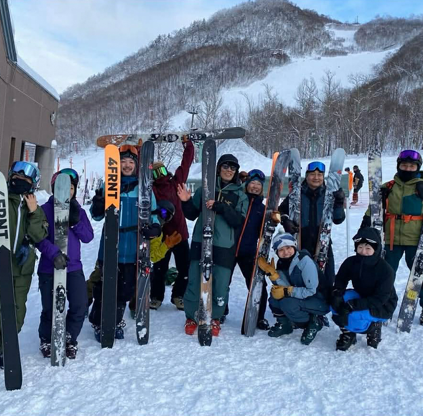 ギアの使い方はもちろん、パウダーレッスンを含め、やさしく丁寧にガイド致します。4FRNTスキー、バックカントリーギア(シール、スノーシュー、ビーコン、スコップ、プローブ、バックパック等)のレンタルも完備しています。